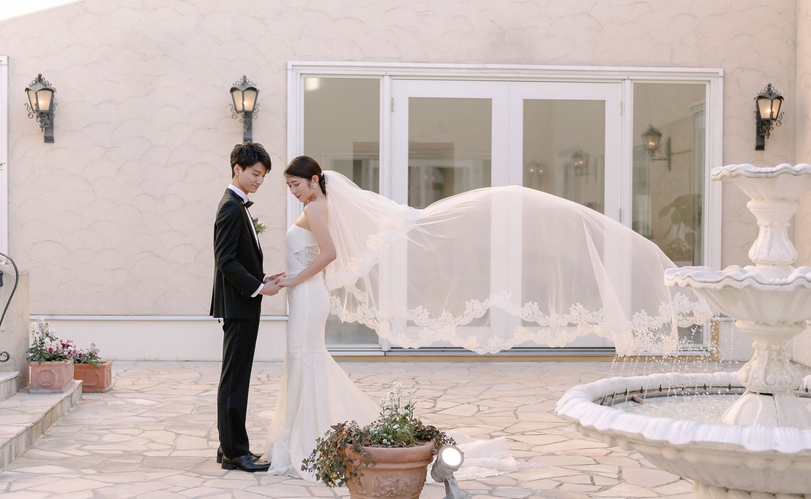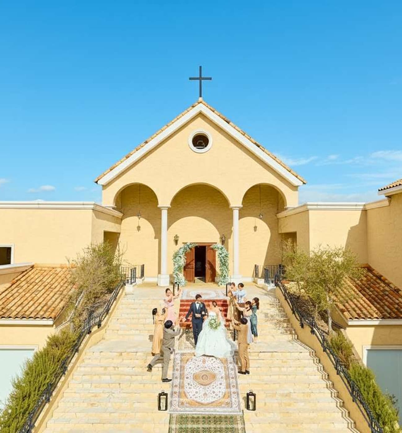 南フランス・プロヴァンスの世界観にこだわり抜いた敷地内には、思わず写真を残したくなるフォトスポットが点在。やわらかな陽光が包む美しい建物、緑や花々に彩られた風景のすべてが、おふたりを美しく引き立てます。どこを切り取っても絵になる空間で、まるで映画のワンシーンのような特別な一枚を残せます。